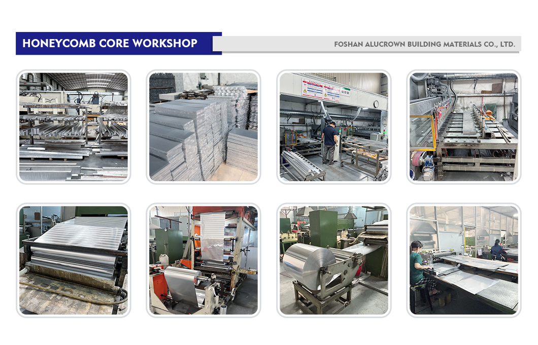 The manufacturing of aluminum honeycomb panels is a fascinating process of precision engineering. It begins with the creation of the core itself. Thin coils of aluminum foil are printed with adhesive lines, then stacked and cured to form a “honeycomb block.” This block is then expanded like an accordion to reveal the characteristic hexagonal cells and sliced to the desired core thickness. Simultaneously, the aluminum face and back skins are prepared, often with a pre-treatment like chromating or anodizing for corrosion protection. In the lamination stage, a high-performance adhesive film is placed between the core and each skin. This “sandwich” is then subjected to immense heat and pressure in a large, flat-bed press or an autoclave. This process cures the adhesive, creating a permanent, structural bond that is incredibly strong and rigid. Finally, the finished panels are precisely trimmed, and edges are sealed to protect the core. This intricate factory process transforms simple aluminum foil and sheets into a high-tech composite material that is stronger, lighter, and flatter than the sum of its parts.